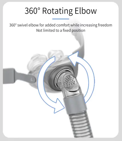 - 360° Swivel Elbow — Hose rotates freely without tugging or mask displacement — perfect for side sleepers.