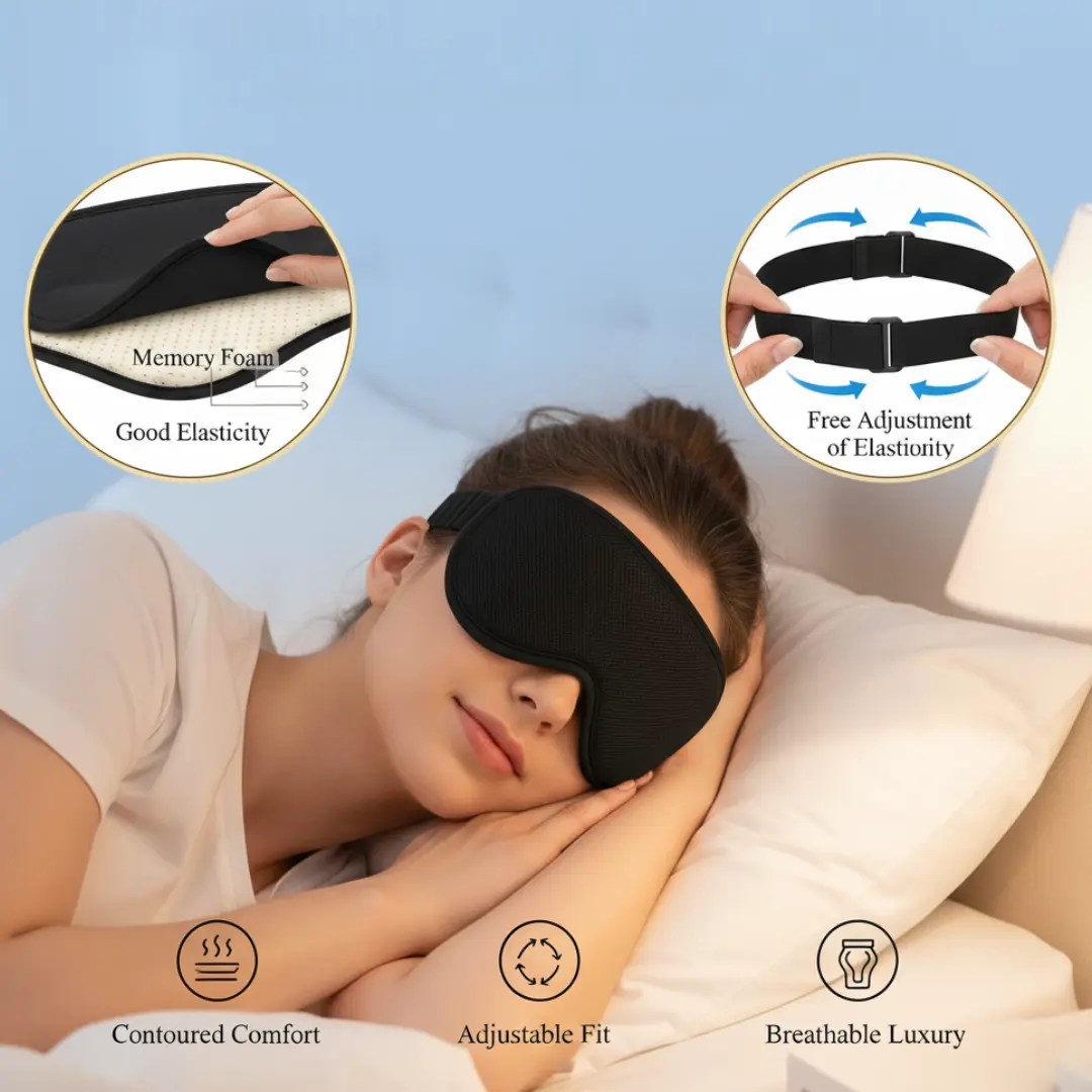 Upgrade your nights with the Super Soft 3D Sleeping Eye Mask. The silky, adjustable blindfold designed for perfect sleep anywhere you go.