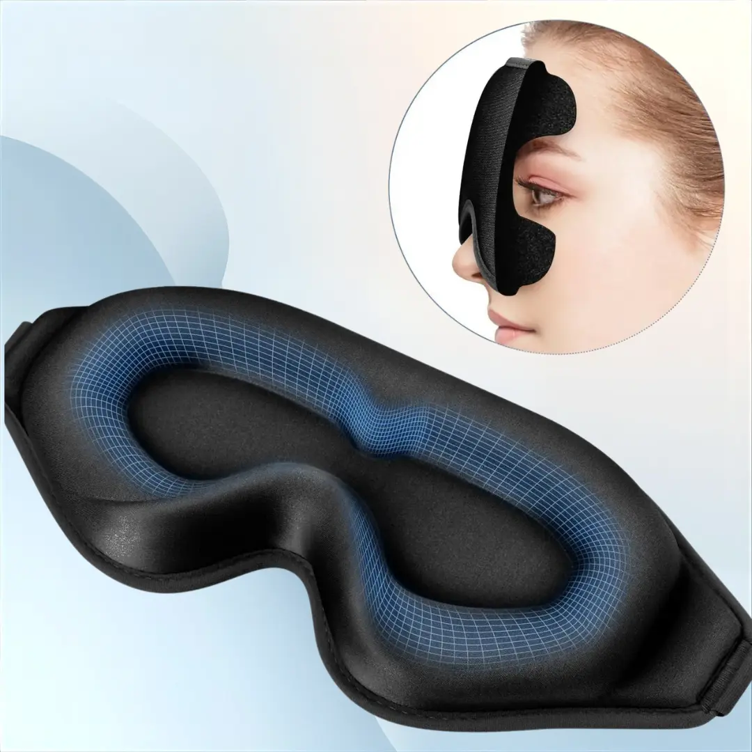 The contoured 3D shape hugs gently around your eyes to block all light — perfect for deeper, faster sleep.