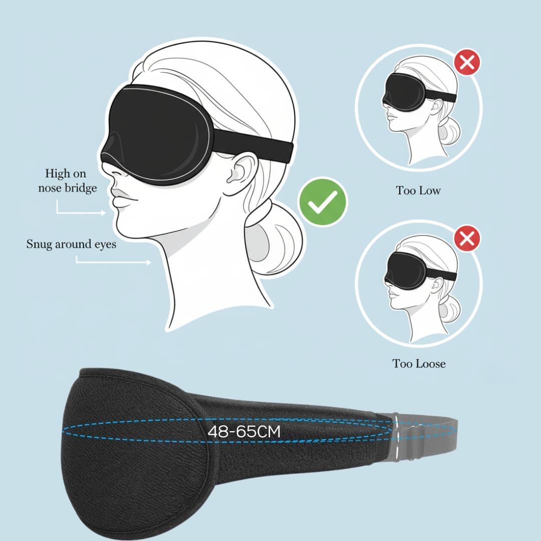 The adjustable elastic strap fits every head size without tangling hair or slipping, ensuring full blackout even when turning in bed.